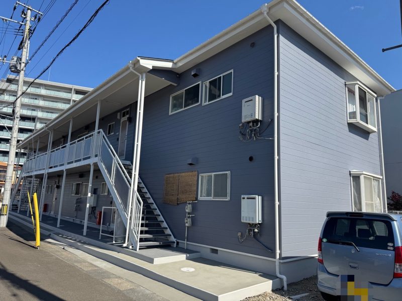 水色の外壁は、爽やかで清潔感があり、視覚的に涼しげでリラックス効果をもたらします!